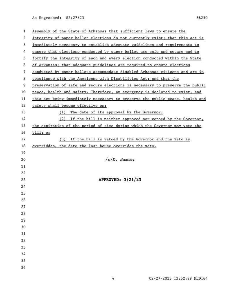 This is a link to an NPR (KUAR affiliate) article that discusses why the legislature felt it was necessary to regulate paper ballots: